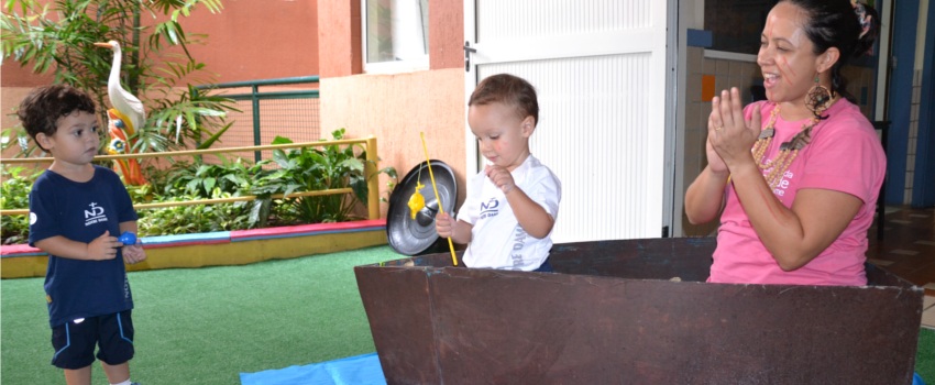Os matriculados no Maternal I, por exemplo, estudaram a cultura indígena brasileira. Eles identificaram os costumes dos primeiros habitantes do Brasil, por meio de brincadeiras, contação de histórias e dramatizações, descreveu a educadora Edna Gonçalves.