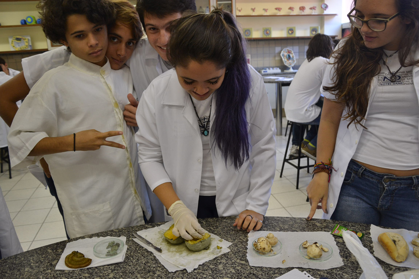 Os estudantes da 2ª Série do Ensino Médio do Colégio Notre Dame Recreio participaram de aula prática sobre fungos, durante aula da disciplina de Biologia.