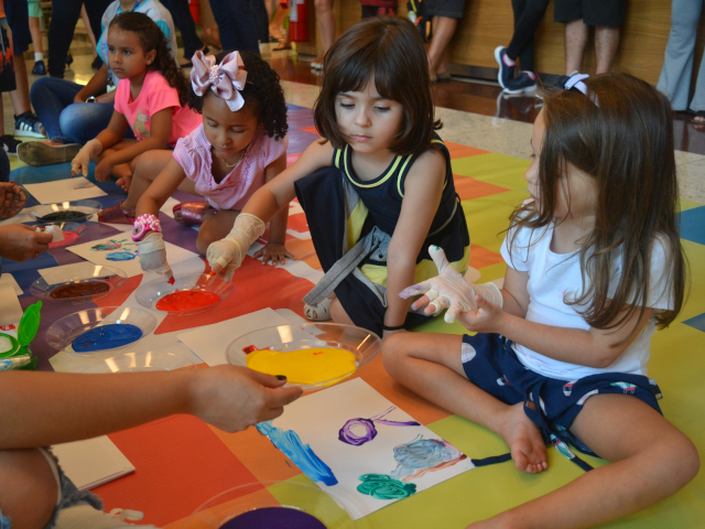 o também incluiu estímulo à criatividade, pois, orientados pela equipe pedagógica do Colégio, os participantes pintaram e confeccionaram chaveiros, marcadores de página e pulseiras, além de preparar slime.