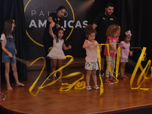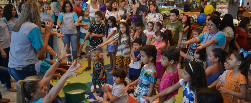 Realizado no teatrinho do Américas Shopping, o evento ofereceu uma diversificada programação às crianças que frequentavam o centro comercial – de modo que, enquanto elas se divertiam, seus responsáveis conhecessem a fazer pedagógico da instituição de ensino. Por isso, oportunizou que, inicialmente, assistissem a um Aulão de Ginástica.