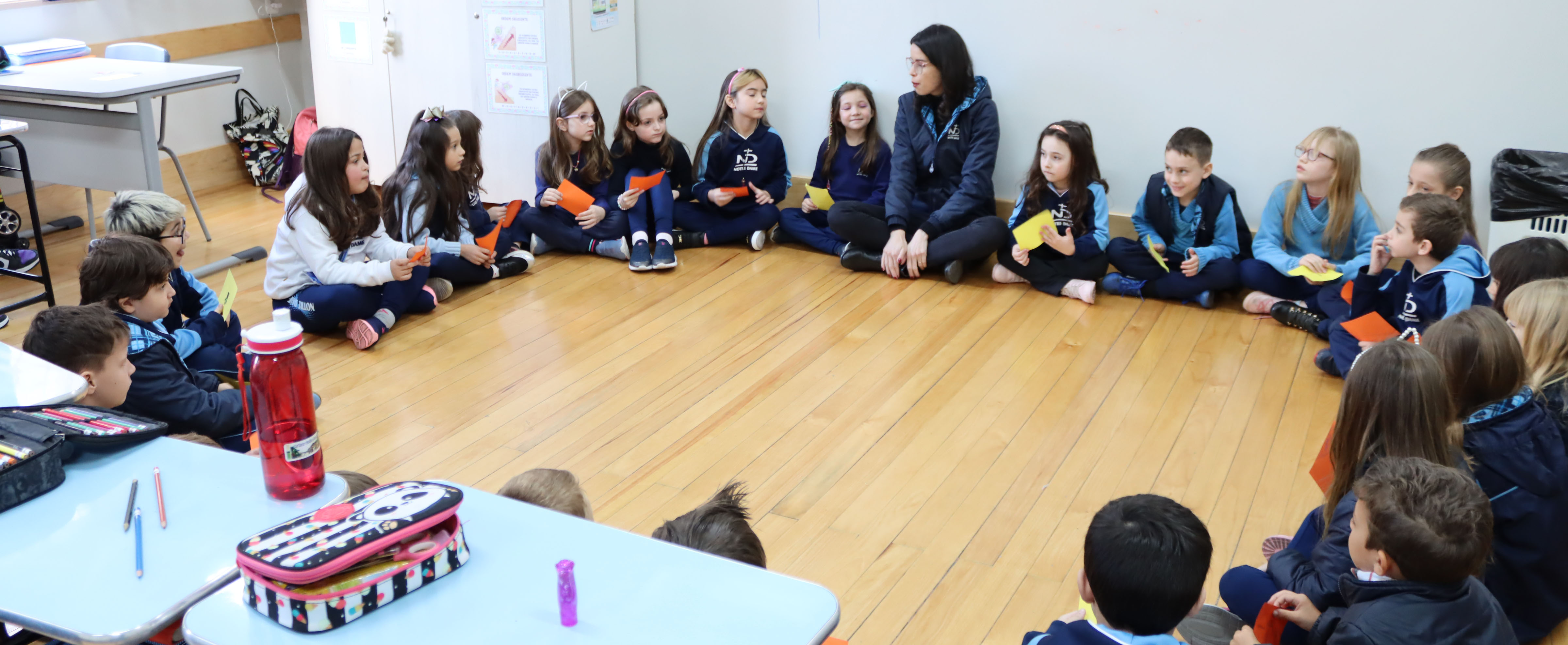 Conduzida pela proposta da pedagogia Notre Dame, a qual propõe formar indivíduos para a cidadania global, a educadora bilíngue do Colégio Notre Dame Passo Fundo, Daniele de Freitas Schuster, propôs uma atividade de registro com os estudantes do 1º Ano do Ensino Fundamental I. Após construírem conhecimentos científicos na disciplina de Science do currículo bilíngue – o qual foi adotado pela Rede de Educação em 2021 -, as crianças foram estimuladas a expressarem no papel os saberes apreendidos com a aula prática para, depois, compartilharem suas descobertas em grupo.