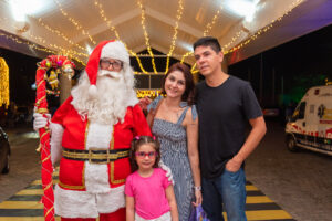Aproximando-se do público e surpreendendo especialmente as crianças, a presença do Papai Noel, distribuindo doces e abraços, originou uma chuva papel picado, anunciando que é tempo de celebrar e agradecer.
