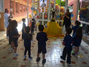 As crianças matriculadas na Educação Infantil e no Ensino Fundamental I, por exemplo, prestigiaram a contação da narrativa infantil que, escrita por Tania Veiga Judar, remete aos primeiros anos de vida da personalidade religiosa.