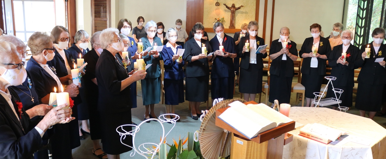 A celebração do Jubileu de Vida Religiosa Consagrada é sempre permeada por gratidão, alegria e louvor, independentemente se ele for de Prata (25 anos de vida consagrada), Ouro (50 anos), Diamante (60 anos), Ferro (65 anos) ou Graça (70 anos). Por isso, observando todas as medidas de segurança, a maioria das 26 jubilantes participou, na terça-feira (12), de um momento simples e marcante, sinalizando o reconhecimento àquelas que dedicam seu tempo, trabalho, oração e vocação à missão Notre Dame no Brasil.