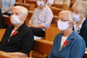 O motivo: celebrar o jubileu de vida consagrada de 13 irmãs de Notre Dame. Para elas, o ano de 2022 marca as comemorações de 25, 50, 60, 65 e 75 anos de consagração à vida religiosa. Na cerimônia jubilar, as religiosas renovam os votos de pobreza, obediência e castidade que norteiam a experiência da fé como Irmãs de Nossa Senhora, proferidos há décadas, pela primeira vez.