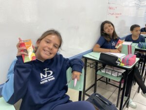 Visitando todas as salas de aula do educandário, a religiosa não deixou de entregar um toque de doçura, uma vez que distribuiu cartões personalizados e deliciosos chocolates. “O carinho e a atenção estão nos detalhes, não é mesmo?!”, comentou um dos estudantes, expressando gratidão pelo gesto recebido.