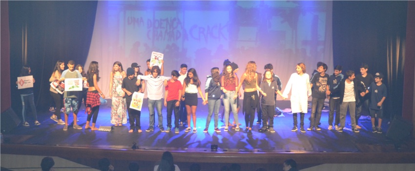 peça-8ano1Os roteiros foram elaborados pelos próprios educandos, sob a supervisão da docente responsável pelas disciplinas, Josete Galdino, a partir da história de Dora, uma menina de classe média alta que se envolveu com drogas. Dessa forma, além de possibilitar o exercício do texto teatral, conteúdo estudado durante o primeiro trimestre letivo, a tarefa objetivou conscientizar os adolescentes sobre os perigos do consumo de drogas, esclarece a educadora.
