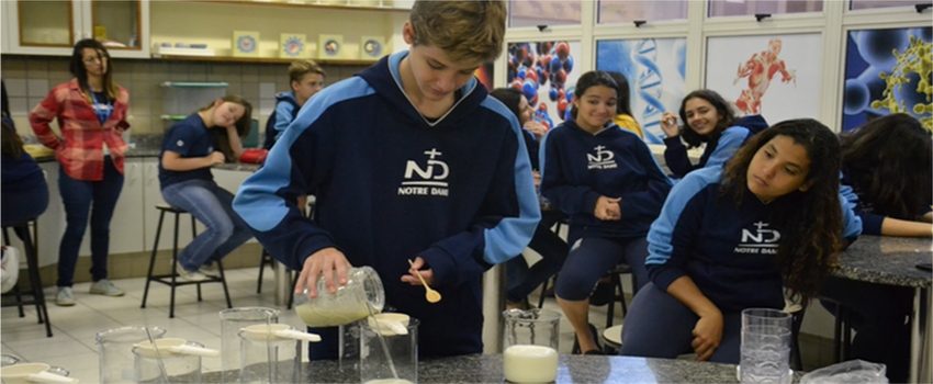 Complementarmente ao estudo sobre o “Aparelho Digestivo” – realizado, ainda, no final do primeiro trimestre letivo, os estudantes do 8º Ano do Ensino Fundamental participaram de aula prática de Ciências, na qual observaram a colônia de bactérias do Kefir.