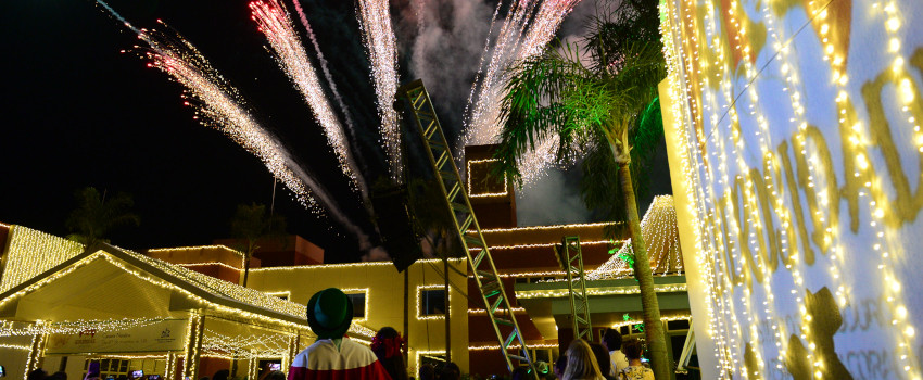 Após a apresentação musical, os personagens Generosa e Natalino – interpretados pela estudante Fernanda Soliman e pelo ator Lucas Samagaio – convidaram os presentes a conectarem-se ao verdadeiro espírito do Natal, preparando-os para o acendimento – ocorrido após contagem regressiva e acompanhado por show de fogos de artifício.