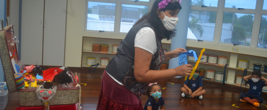 Os educandos do 1° Ano do Ensino Fundamental, por sua vez, tiveram aguçada sua curiosidade acerca da trama de “Ana, Guto e o Gato Dançarino” – idealizada por Stephen Michael King, por meio de apresentação da atriz e contadora de histórias Ana Nogueira.